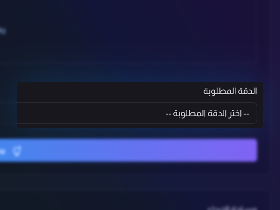 اختر الدقة التي تطمح إليها من قائمة "الدقة المطلوبة"، حيث نوفر لك خيارات متنوعة تصل إلى دقة 4K الفائقة والاحترافية والسينمائية جداً.