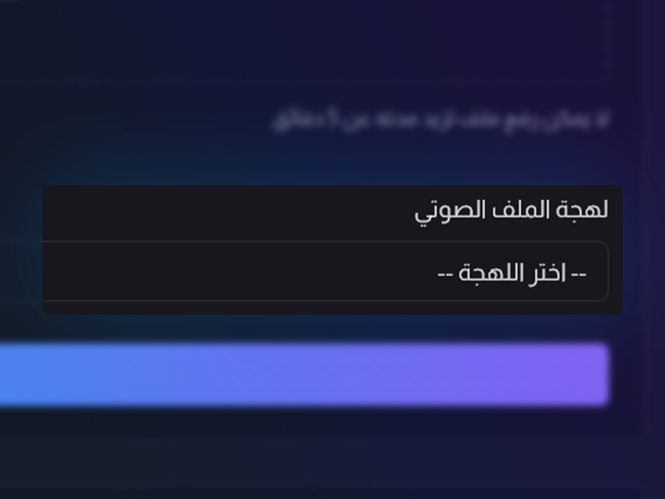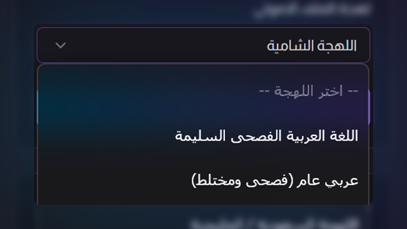 اختر اللهجة المناسبة للملف الصوتي من القائمة المخصصة، ليتمكن الذكاء الاصطناعي من مطابقة الكلمات المنطوقة مع القواعد اللغوية الصحيحة ببراعة تامة وسرعة مذهلة وفائقة.